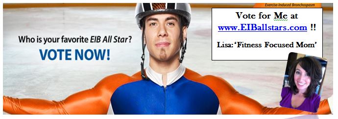 Because I have been chosen as a finalist, I really want a platform to stand on in regards to teaching others about EIB. Please help me become the WINNER of the competition and be that spokesperson. As the winner, I also get flown to LA and have dinner with Apolo Ohno. The prize is over $10,000!!! Yes, here comes the plug >>>Please go to this site and vote for me …..Lisa: the ‘Fitness Focused Mom’ and help me win!! http://www.eiballstars.com/finalist-bio.aspx?id=58